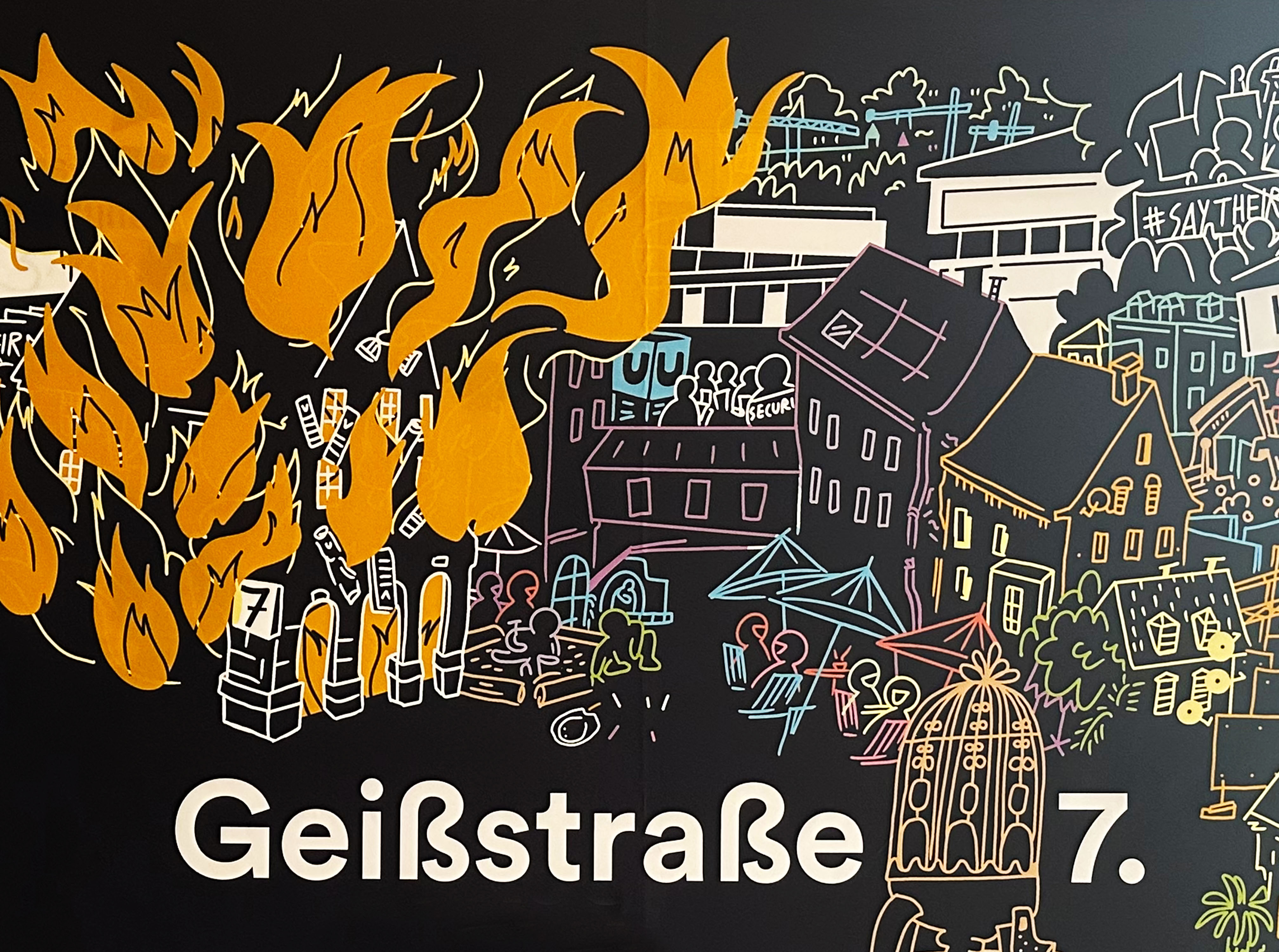 Als Initiative Geißstraße 7 ist uns die Schwierigkeit bewusst, nicht im Kontakt mit den Angehörigen und Überlebenden zu stehen und zu wissen, was sie möchten und brauchen. Wir wollen und können nicht für sie sprechen. Unsere Intention ist auf die schmerzhafte Leerstelle aufmerksam zu machen. Aus einer rassismuskritischen Haltung heraus ist es uns jedoch ein großes Anliegen dennoch eine breite Öffentlichkeit auf den rassistischen Brandanschlag und die Versäumnisse zu schaffen.